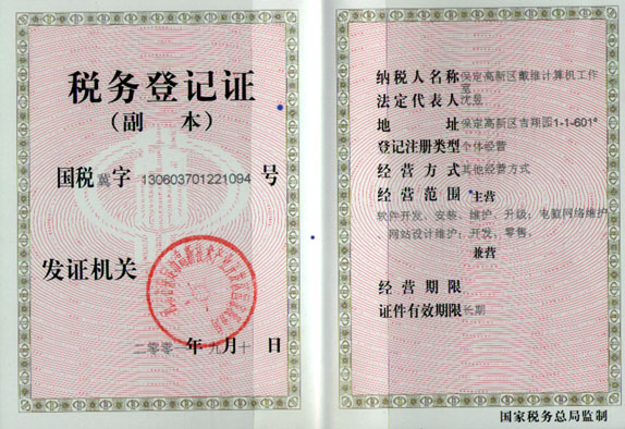 发证机关:河北省保定市高新技术产业开发区国家税务局